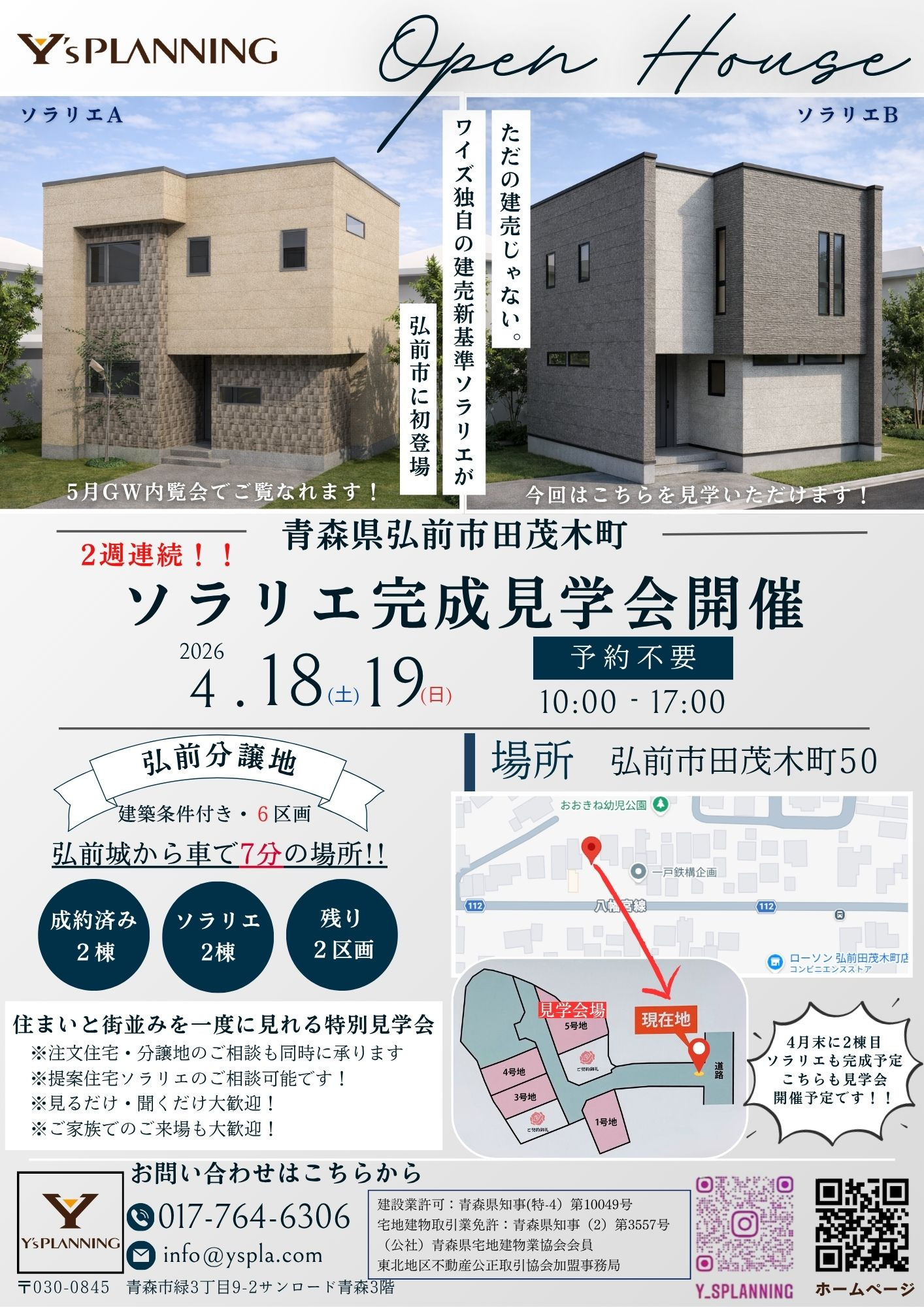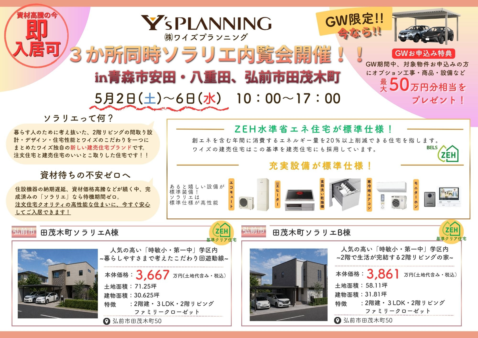 ワイズプランニングでは、4月に弘前市田茂木町、そして5月のゴールデンウィークには青森市安田・八重田、弘前市田茂木町